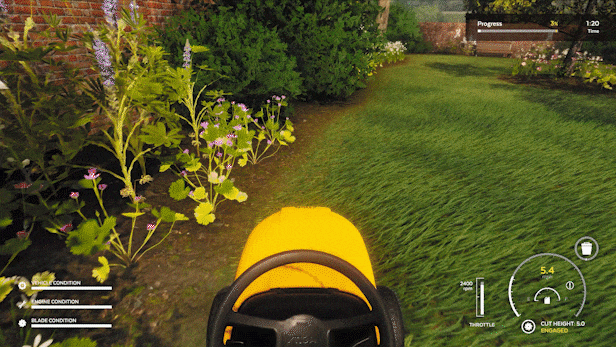 تم إعادة إنشاء محاكي قص العشب في الخطوط الأمامية من Toro و SCAG و STIGA مع أجهزتهم الواقعية بصريًا وجسديًا. تتوفر 12 جزازة في اللعبة الأساسية ، ولكل منها تحدياتها ومرفقاتها وترقياتها لمتابعة.